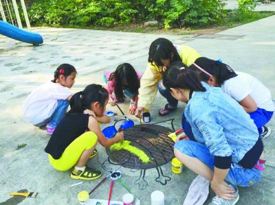 校园里,黑乎乎的窨井盖看起来毫无美感,如何才能将它们变成一道风景线?近日,小营小学的孩子们发挥创意,和父母一起将窨井盖当成画布,涂鸦成了一幅幅艺术品。本报记者 钱红艳摄