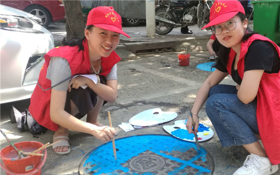 福建法治报-海峡法治在线7月25日讯 日前,共青团莆田城厢区委携手莆田国际油画城管委会、城厢区环卫处,组织城厢区大学生青春行动联盟、龙桥街道返乡大学生、青年志愿者们开展“文明创城·青年先行”助力创城大地美容彩绘宣传系列志愿服务活动。图为志愿者对辖区下水道井盖进行彩绘